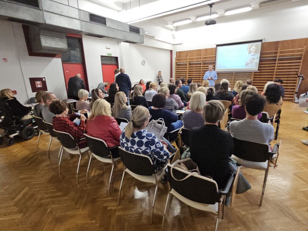 Zdravniki, medicinske sestre in drugi zdravstveni delavci so z zanimanjem prisluhnili izkušnjam s terena in poudarjenim potrebam uporabnikov. Ob predavanju je društvo pripravilo tudi stojnico z informativnimi gradivi in pripomočki, kjer so obiskovalci lahko pridobili koristne informacije ter postavljali vprašanja o vsakodnevnih izzivih naših članov.
