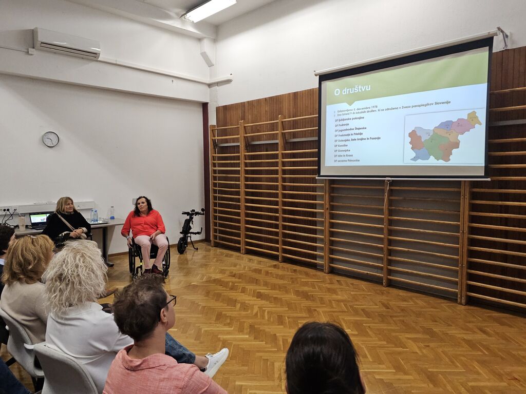 Predsednica društva Mirjam Kanalec je skupaj s članico Petro Mežnar pripravila predavanje o pomenu ustrezne podpore, informiranosti in dostopnosti pripomočkov za izboljšanje kakovosti življenja oseb z invalidnostjo.