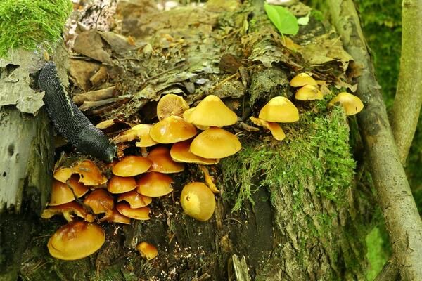 Na trohnečem lesu se prehranjujejo in razmnožujejo tudi številne glive. S pomočjo encimov, ki jih izločajo, lahko presnavljajo celulozo in lignin, dva glavna gradnika lesa. Gre za dolgotrajen proces, v katerem na koncu nastane humus. S svojim presnovnim delovanjem glive in drugi razkrojevalci tako opravljajo zelo pomembno vlogo pri kroženju snovi v naravi.