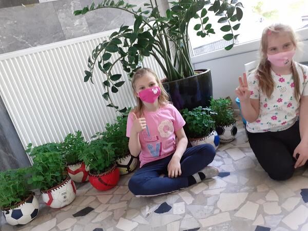 Učenke in učenci OŠ Oskarja Kovačiča so iz nekaterih odsluženih nogometnih žog, ki smo jih zbrali pretekli mesec, izdelali unikatne cvetlične lončke.