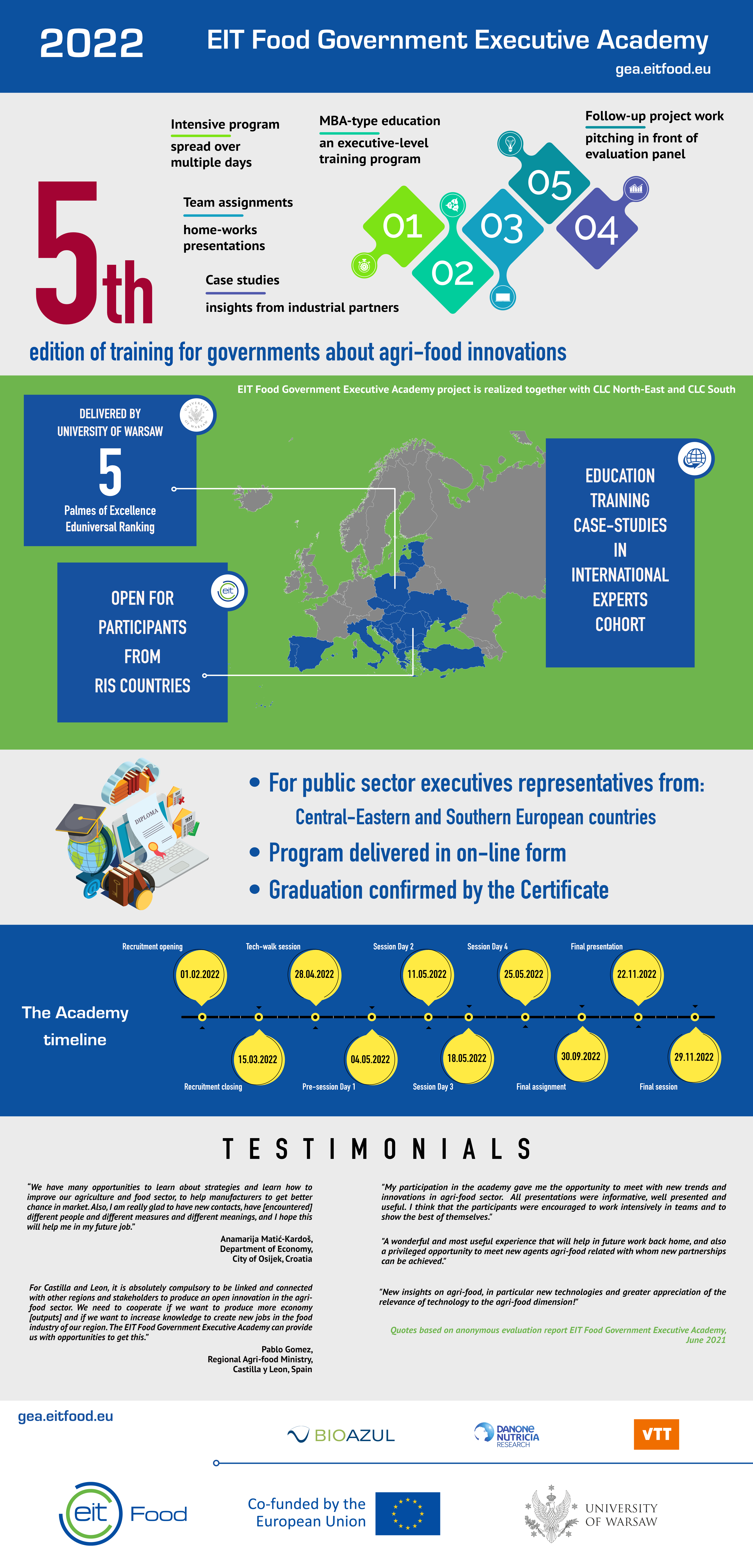 Na akademijo EIT Food Government Executive Academy se lahko prijavite na povezavi.