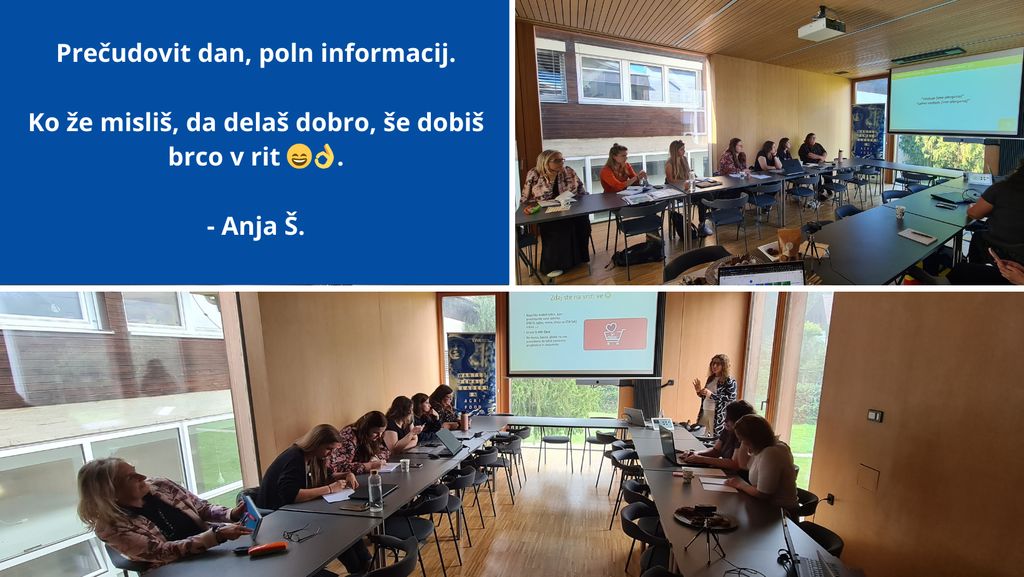 Poglobili smo se v različne teme, vključno z ustvarjanjem vsebin, strategijami trženja, označevanjem živil in širitvijo na tuje trge. Urša Žorž Požrl je delila neprecenljive nasvete o tem, kako izstopati z neobičajnimi vsebinami, udeleženke programa EWA pa so se lahko naučile kako v konkurenčnem digitalnem okolju očarati svoje sledilce in pustiti trajen vtis.