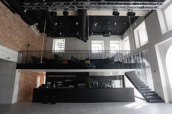 V novi kleti so urejeni večnamenska dvorana, garderobe, sanitarije za obiskovalce, toplotna postaja in delavnica. V pritličju je bar, ki so ga arhitekti v nasprotju z galerijo odeli v črno, ena izmed sten pa razkriva izvirno opečno konstrukcijo.