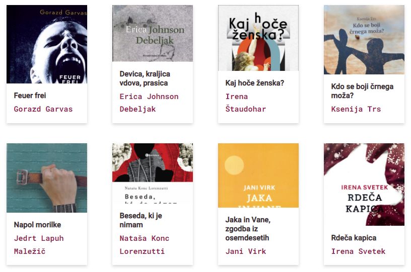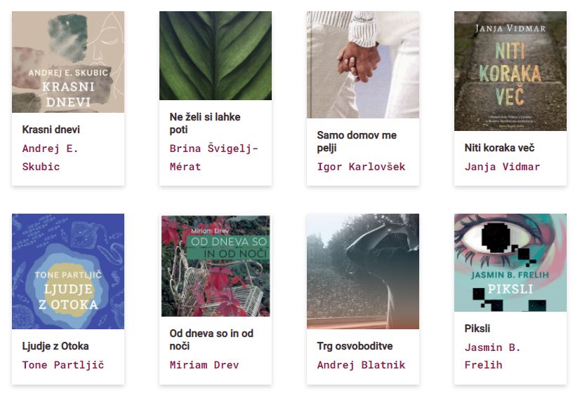 Pripravili smo izbor najkvalitetnejših leposlovnih knjig slovenskih avtorjev, izdanih v letu 2021. Uživali boste v branju del že uveljavljenih, v preteklosti nagrajenih, pronicljivih avtorjev, ki imajo izdelan svoj lastni pisateljski slog, in v zgodbah, ki nas vabijo h globljemu razmisleku. Na seznamu so se znašla tudi nekatera nova, še ne tako poznana imena, ki s svojim pisanjem kažejo potencial. Izbirate lahko med deli najrazličnejših žanrov, od kriminalke, družbenih in zgodovinskih romanov, biografskih romanov, biografij in spominov ter kratke proze in esejev. Pa naj še kdo reče, da ne gresta kakovost in odlično branje z roko v roki.