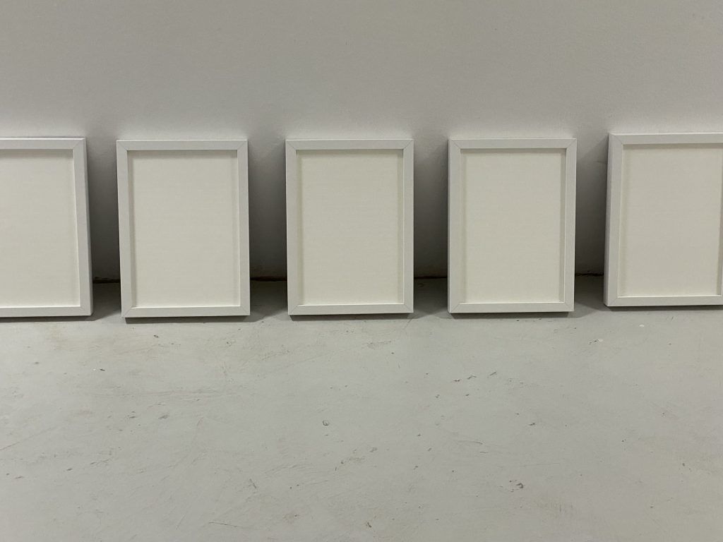 V delih Transkripcija (belo na belo) in Zapis s kredo se umetničina izjava ponovi v tekstovni obliki. Z belim tiskom na belo površino Bojanić znova nakazuje na pritajenost vsebine. Na prvi pogled lahko namreč posamezni sitotisk deluje bodisi kot prazen list bodisi kot list z izbrisano vsebino. Umetnica bralcu ponovno namenoma omeji razpoložljivost informacij, ki jih besedilo razkriva.