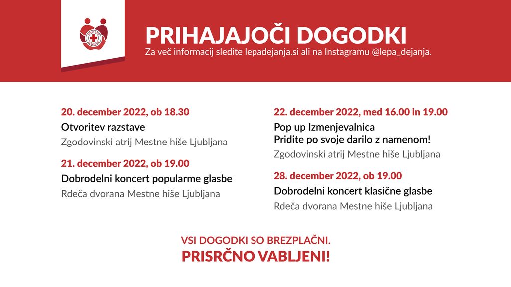 Spremljajte nas na naših Instagram profilih @rdecikrizljubljana, @lepa_dejanja in @izmenjevalnica ter Facebook profilu @Rdeči križ Ljubljana. Hvala ❤️
