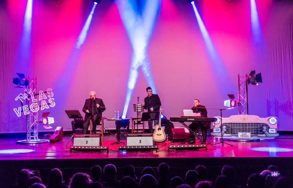 Poleg glasbe iz najboljših časov Vegasa, ko so tam prepevali Frank Sinatra, Elvis Presley, Ray Charles in Marilyn Monroe, boste izvedeli marsikatere resnične zgodbe in dogodivščine naših štirih asov, pa tudi nekaj malo znanih dejstev o glasbenih legendah, ki so blestele v Las Vegasu. Vse nesmrtne glasbene legende bodo interpretirali trije virtuozni slovenski glasbeniki in pevci. Oto Pestner, Uroš Perić in Omar Naber. Za češnjo na torti vas bo po poti greha vodila hudomušna Tina Gorenjak.