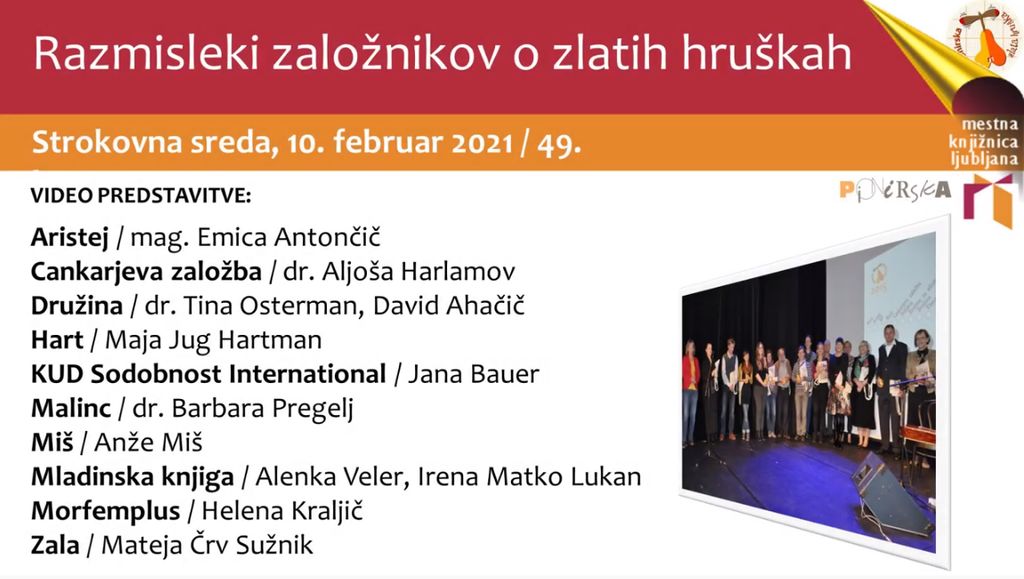 V okviru februarske strokovne srede vas vabimo na ogled predstavitve razmislekov o znaku in priznanju zlata hruška, ki so jih podali naši Zlati založniki.
