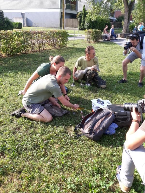 Oba labodja starša sta že obročkana, zdaj pa smo identifikacijske obročke namestili tudi mladičema. Obročkanje ptic ima več kot stoletno tradicijo, v Sloveniji pa ta dejavnost organizirano poteka od leta 1926. Slovenski obročkovalci, ki za svojo dejavnost potrebujejo posebno dovoljenje, delujejo v okviru Prirodoslovnega muzeja Slovenije – Slovenskega centra za obročkanje ptic.