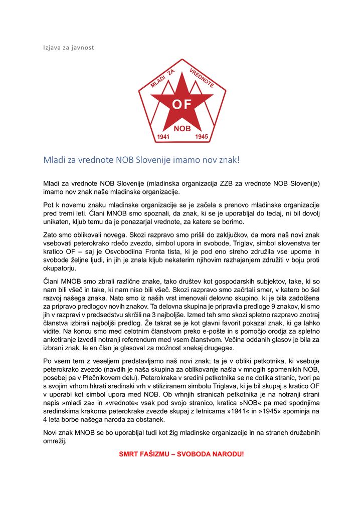 Mladi za vrednote NOB Slovenije (mladinska organizacija ZZB za vrednote NOB Slovenije) imamo nov znak naše mladinske organizacije.