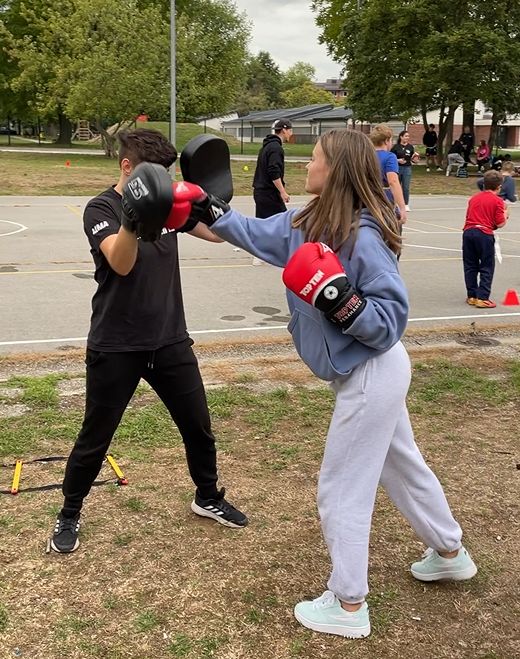 V športnem duhu smo nadaljevali tudi drugi dan, v soboto, 24. 9., med 15. in 18. uro, ko so se nam z ameriškim nogometom in flag footballom pridružili Domžale Tigers in Tigers W, Maja iz organizacije Zvezde so blizu pa je s seboj pripeljala Tino Koščak, odlično športnico, ki že 6 let trenira mešane borilne veščine, 5 let pa boks. Mladi so se lahko preizkusili v vseh treh športih, se naučili podajanja žoge za ameriški nogomet, novih udarcev in drugih športnih prijemov s strani ženskih in moških predstavnikov v športu.