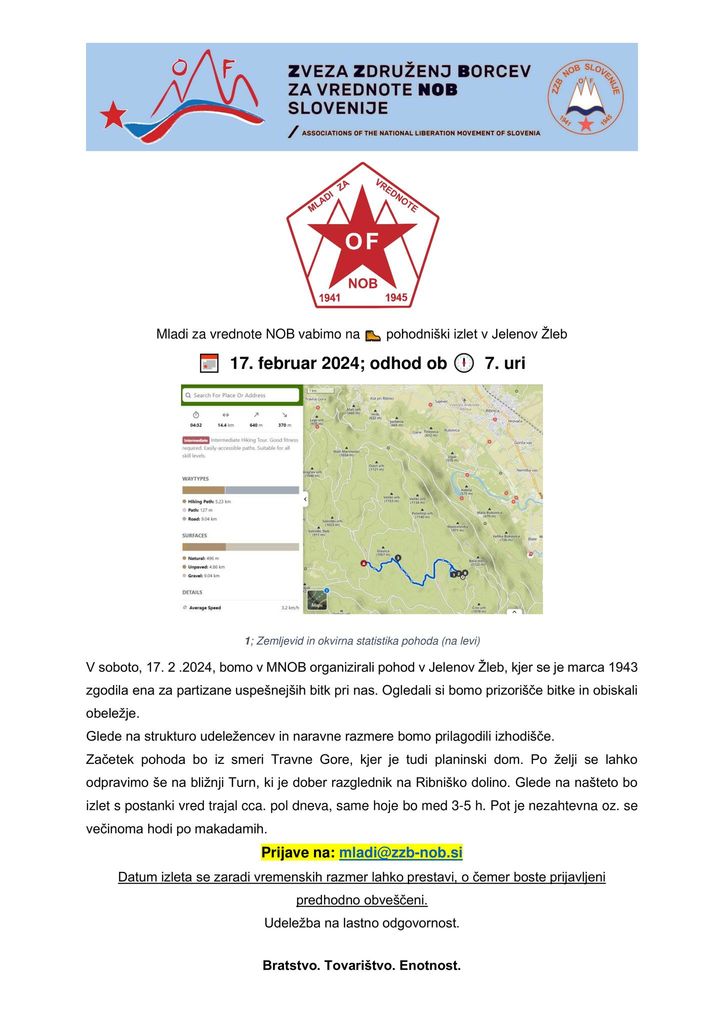 Mladinska organizacija ZZB za vrednote NOB Slovenije (MNOB) se je 17. februarja odpravila na pohod v Jelenov Žleb na prizorišče ene od najslavnejših bitk slovenskih partizanov.