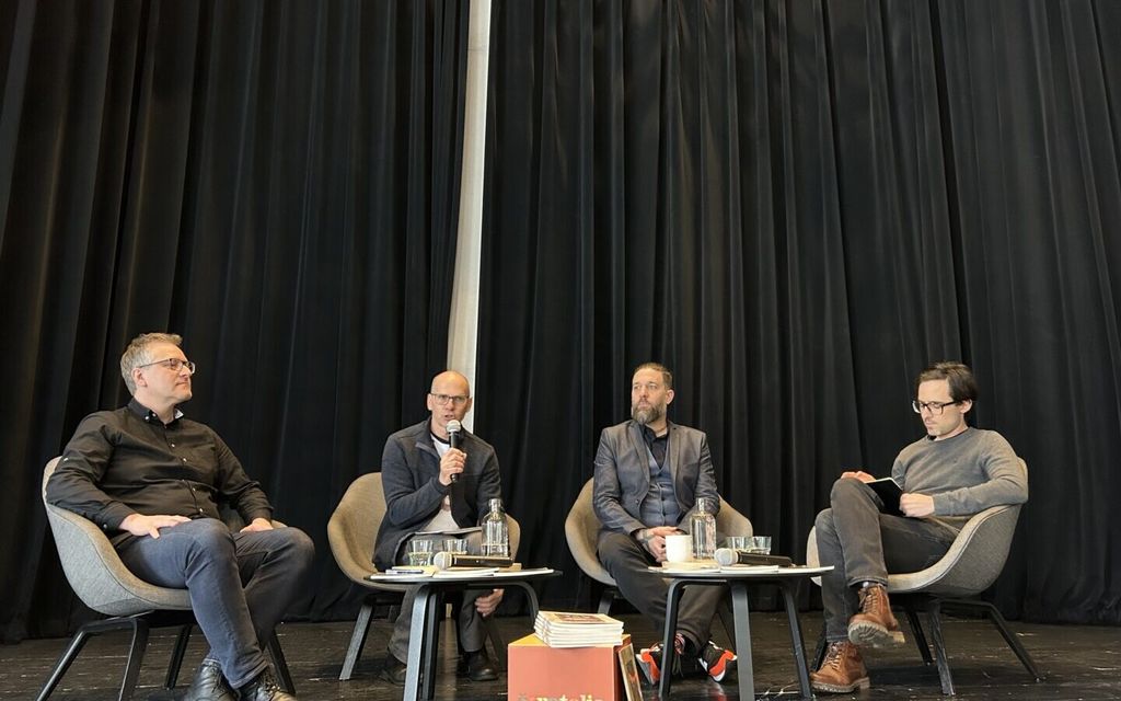 Več o novinarski konferenci in stripu si lahko preberete v članku Izšel je strip o Cukrarni in znameniti literarni četverici, ki je tam našla svoj prostor – RTV SLO.