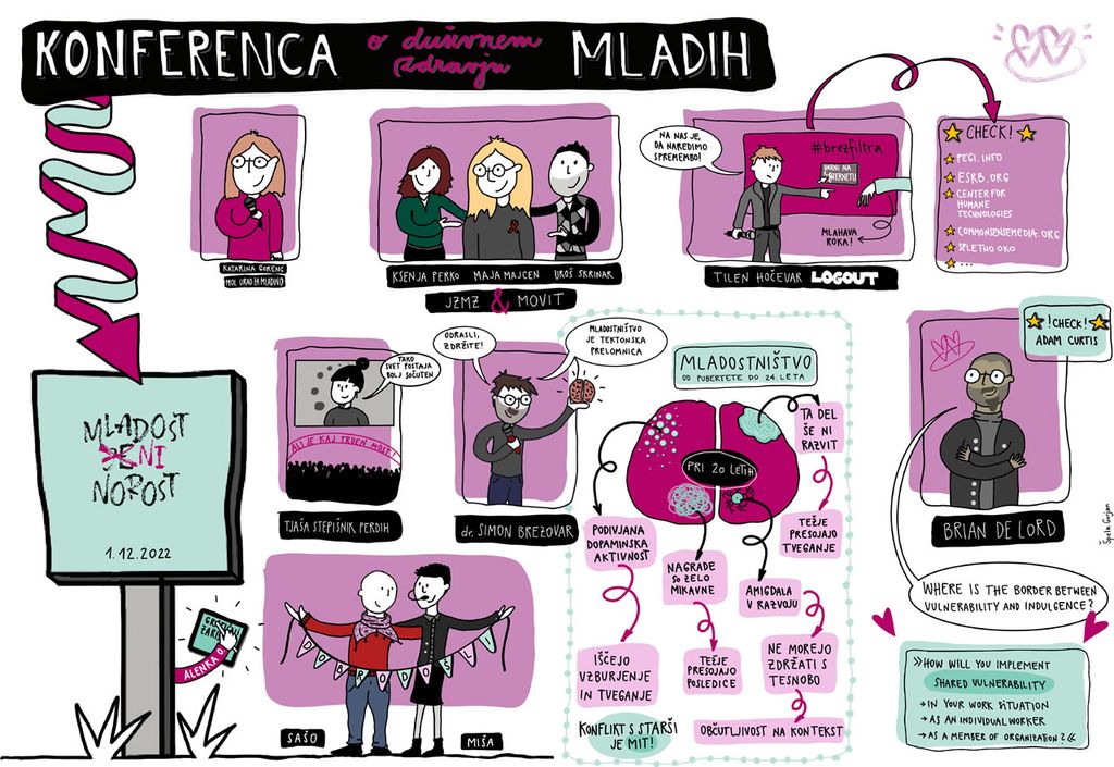 Tekom konference je bilo s strani strokovnjakov pogosto slišati, da je skupni imenovalec pri mladih, ki izražajo duševne stiske, prisotnost težav v domačem okolju in/ali pa so preživeli travmatičen dogodek. Popotnica, ki so jo na različne načine večkrat podali pa je bila, da naj ostanemo v odnosu z mladimi prisotni, povezani, in sočutni, odpiramo varen prostor za ranljivost ter da je velik del podpore v težkih situacijah to, da zdržimo z njimi (z mladimi in s težkimi občutki).