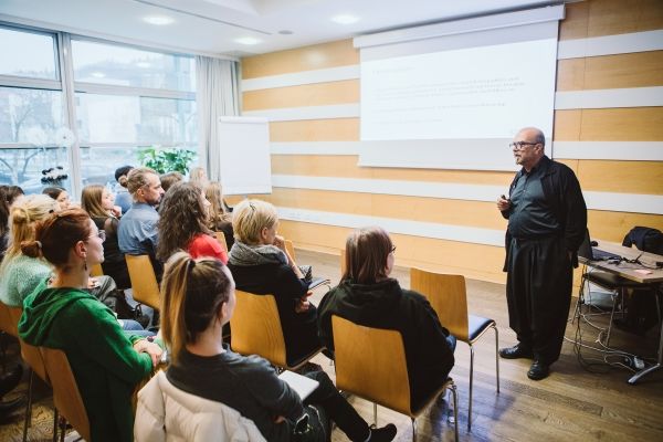 Dr. Aleksandra Schuller, ki deluje v zasebni terapevtski praksi ter pedagoško na visokošolskih ustanovah v Sloveniji in tujini, je v prvem delu delavnice »Podpora in pomoč z umetnostnimi izraznimi sredstvi« predstavila področja umetnostnih terapij, ki ga sestavlja pet modalitet: likovna in plesno-gibalna psihoterapija, glasbena, dramska in integrativna/intermodalna oblika umetnostne terapije. Pri umetnostni terapiji je glavni fokus na ustvarjalnem procesu in kako nam le-ta pomaga izraziti naše notranje misli, občutke in zaznave, zato so v drugem delu sledile ustvarjalne naloge, kjer so udeleženci najprej likovno ustvarjali ter nato doživeto ubesedili v krajšo pesem. V zaključnem delu delavnice pa so se udeleženci odločili, ali so želeli biti »zvočilec« ali »gibalec« in so se tako razdelili na posameznike, ki so ustvarjali zvoke z različnimi inštrumenti in tiste, ki so se ob zvokih gibali. Pri tem so izhajali iz njihove lastne izkušnje prvega dela delavnice, hkrati pa so se uglasili drug z drugim in tako ustvarili novo skupinsko izkušnjo.