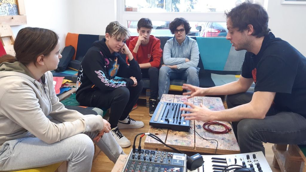 Letošnje zimske počitnice so bile glasbeno obarvane, prvič (in ne zadnjič) smo namreč organizirali Urbano glasbeno šolo. V dveh razpisanih terminih je prve korake v svetu glasbene produkcije naredilo 12 mladih, starih med 10. in 18. let.