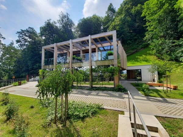 Trajnostna vizija razvoja Ljubljane je narekovala izdelavo objekta iz lesenih križno lepljenih elementov, ki so odličen izolacijski material. Ogrevanje objekta je na ravni sodobnih trajnostnih, nizkoenergijskih rešitev. Streha je z minimalnim naklonom ozelenjena in se lepo vklaplja v brežino Grajskega hriba.