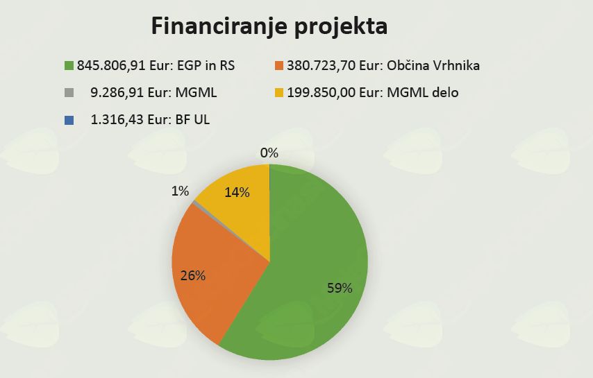 Projekt, ki je bil uvrščen v sofinanciranje Finančnega mehanizma Evropskega gospodarskega prostora 2009-2014 (EGP), je bil izveden v letih 2015 in 2016. S potrditvijo zaključnega poročila v lanskem letu smo projekt uspešno izpeljali in počrpali vsa razpoložljiva evropska sredstva. Ker se v javnosti večkrat pojavljajo netočni podatki o višini projektnih sredstev, vam posredujemo izpis iz finančnega poročila. Poleg sredstev Evropskega gospodarskega prostora in državnih sredstev so projekt financirali še Občina Vrhnika, Muzej in galerije mesta