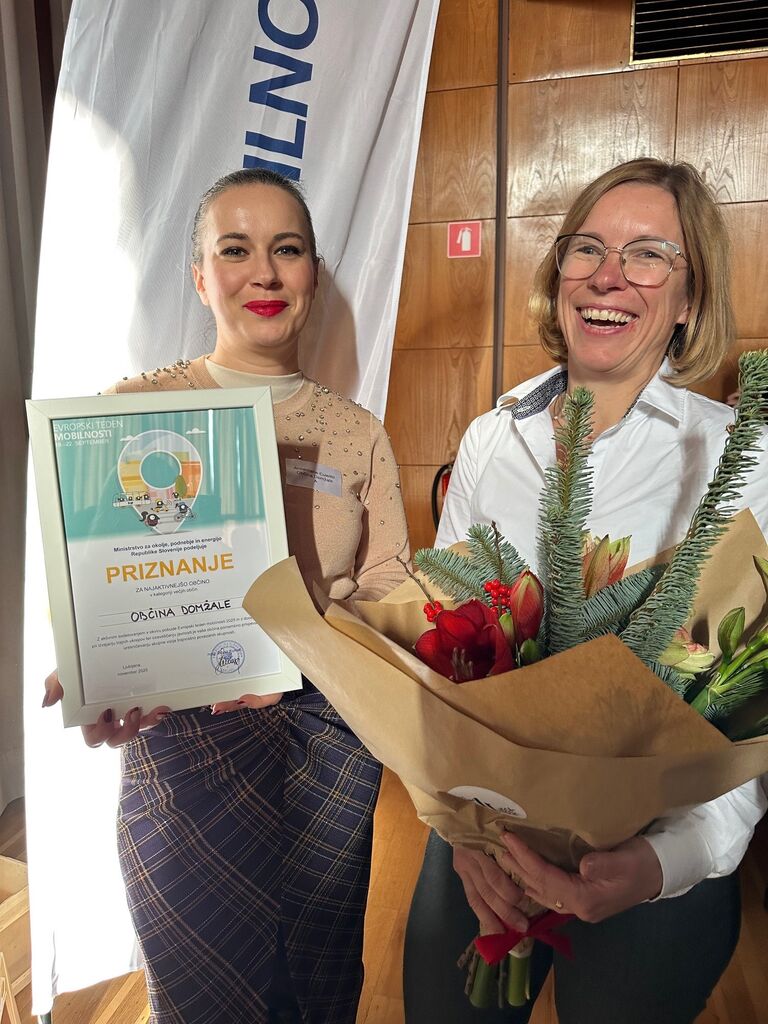 Na konferenci so podelili tudi nagrade za najbolj uspešne programe Evropskega tedna mobilnosti 2025. Med velikimi občinami je zmagala občina Domžale, ki je letos izstopala z izjemno raznolikostjo aktivnosti, močno vključenostjo javnosti in široko mrežo partnerstev s šolami, vrtci, društvi in lokalnimi organizacijami. Občina je pomembne premike dosegla tudi z razvojem novih linij javnega prevoza, uvedbo minibusa Domžalček ter stalno promocijo sistema izposoje koles DBajk. Posebej so izstopali primeri dobrih praks osnovnih šol, aktivno vključevanje mladih v video natečaje ter simbolno oživljanje javnega prostora z »Zelenim dnevom v Domžalah«. Poseben poudarek so namenili tudi ranljivim skupinam, med drugim s pilotnim projektom prilagojenih koles za starejše in osebe z ovirami. S celostnim pristopom v Domžalah trajnostno mobilnost vse bolj umeščajo v dolgoročno vizijo in kulturo vsakdanjega življenja.