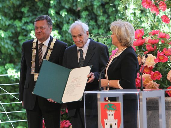 Prof. dr. Marko Vrhunec, partizan, publicist, politik in diplomat je naziv častnega meščana Ljubljane prejel leta 2015.