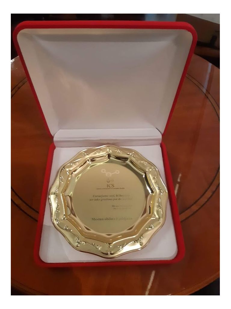 Na srečanju članov Slovenskega združenja korporativne varnosti smo prejeli nagrado ICS – Instituta za korporativne varnostne študije "ustvarjamo vezi, ki bogatijo ter tako gradimo pot do uspeha!"