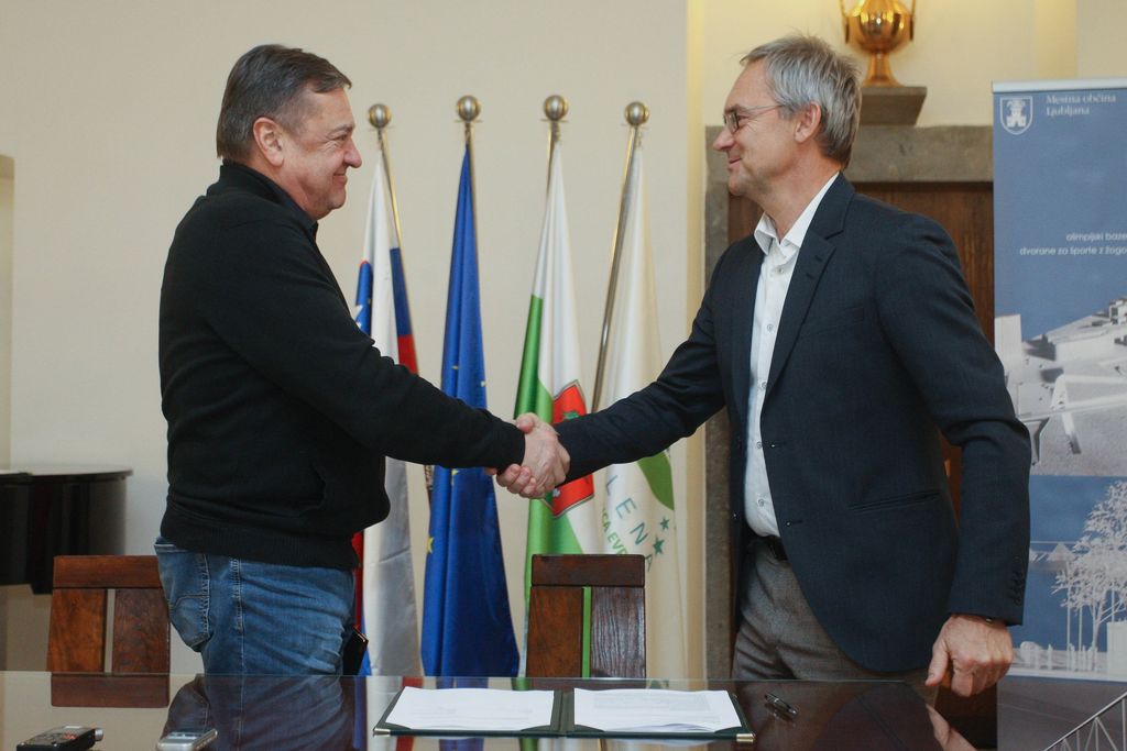 Župan Zoran Janković in direktor družbe Elea iC Angelo Žigon sta v petek, 28.12.2018, v Rdeči dvorani Mestne hiše podpisala pogodbo za izdelavo projektnih faz za pridobitev gradbenega dovoljenja in projekta za izvedbo bazena Ilirija.
