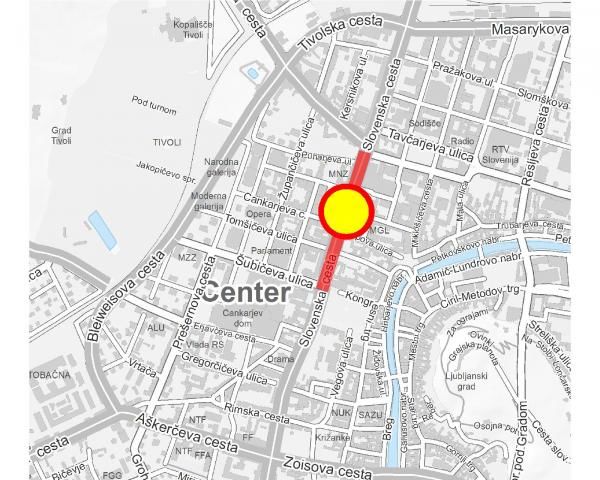 Avtobusi na obvozni trasi ne bodo ustavljali na postajališčih »Lev« in »Tivolska« v smeri proti Šubičevi ulici.