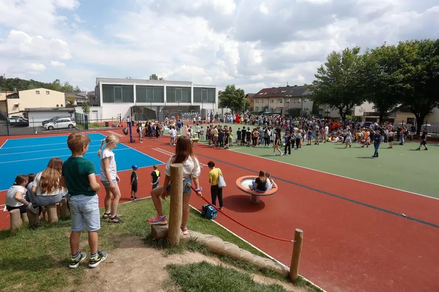 Izvedli smo celovito obnovo šolskega in športnega igrišča, kjer smo ob površinah za atletiko, igre z žogo, namizni tenis, plezali in igrali za urjenje spretnosti postavili še novo plezalno steno ter s pitniki in sanitarijami poskrbeli za maksimalno dobro počutje vseh uporabnikov. Igrišče je namenjeno tako šoli kot širši skupnosti v popoldanskem času.