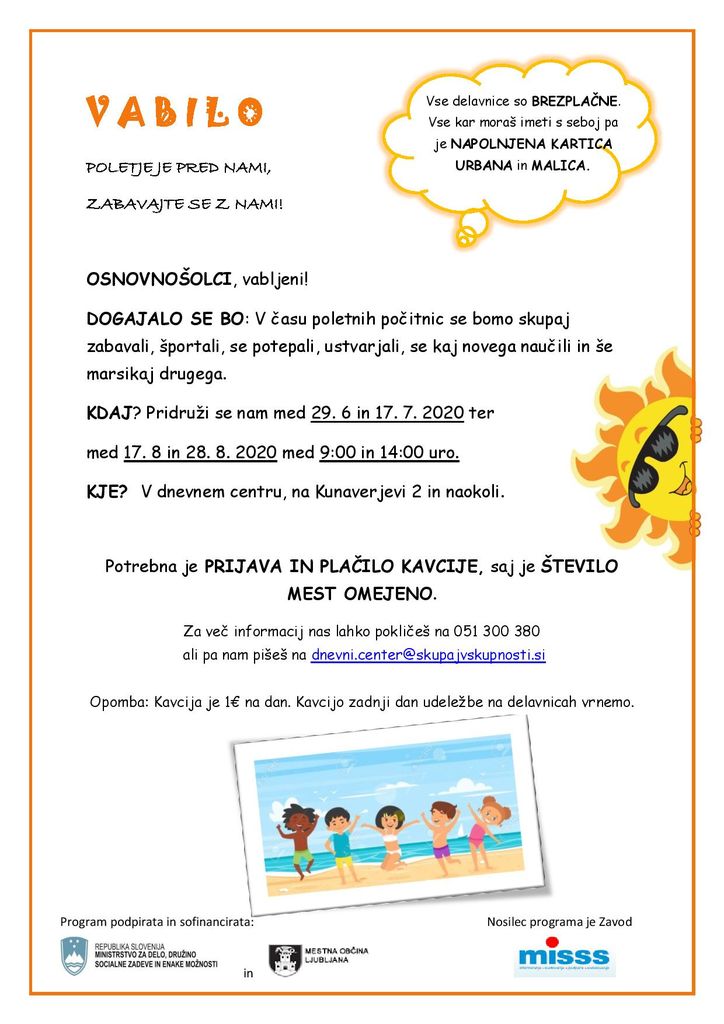 V času poletnih počitnic se bomo z osnovnošolci skupaj zabavali, športali, se potepali, ustvarjali, se kaj novega naučili in še marsikaj drugega.