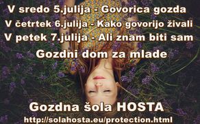 Gozdna šola Hosta vabi vse otroke in mlade k soustvarjanju njihovega gozdnega kotička, kjer se lahko počutijo kot ptički in srne. Vsak delavnik od zjutraj do popoldan lahko doživljajo otroštvo brez spon in pravil, lahkotno kot nekdo, ki nima ene same skrbi. Daleč od prometa in brzenja sveta, v zatišju gozda in šušljanja dreves, otroka objame ritem, ki mu je domač. Brez bojazni, da se bo umazal in brez glasu, ki kliče njegovo ime, otrok zajadra v pravljični svet, v katerem je vse mogoče.