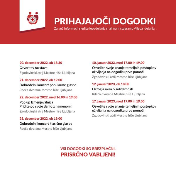 Razstavo je pripravil Rdeči križ Ljubljana, ki ob tem vabi tudi na različne brezplačne spremljevalne dogodke