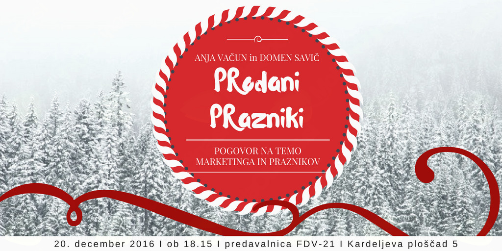 Vabimo vas na dogodek PRodani PRazniki, ki bo 20. decembra 2016,  ob 18.15, v predavalnici FDV-21 na Fakulteti za družbene vede UL. Z nami bo Anja Vačun, franšizna menedžerka The Coca-Cola Company Slovenia, ki nam bo povedala več o gradnji, aktivnostih in promociji blagovne znamke Coca-Cola. Pogovor bo vodil Domen Savič z Inštituta Državljan D, zavoda za spodbujanje informacijske in medijske pismenosti.