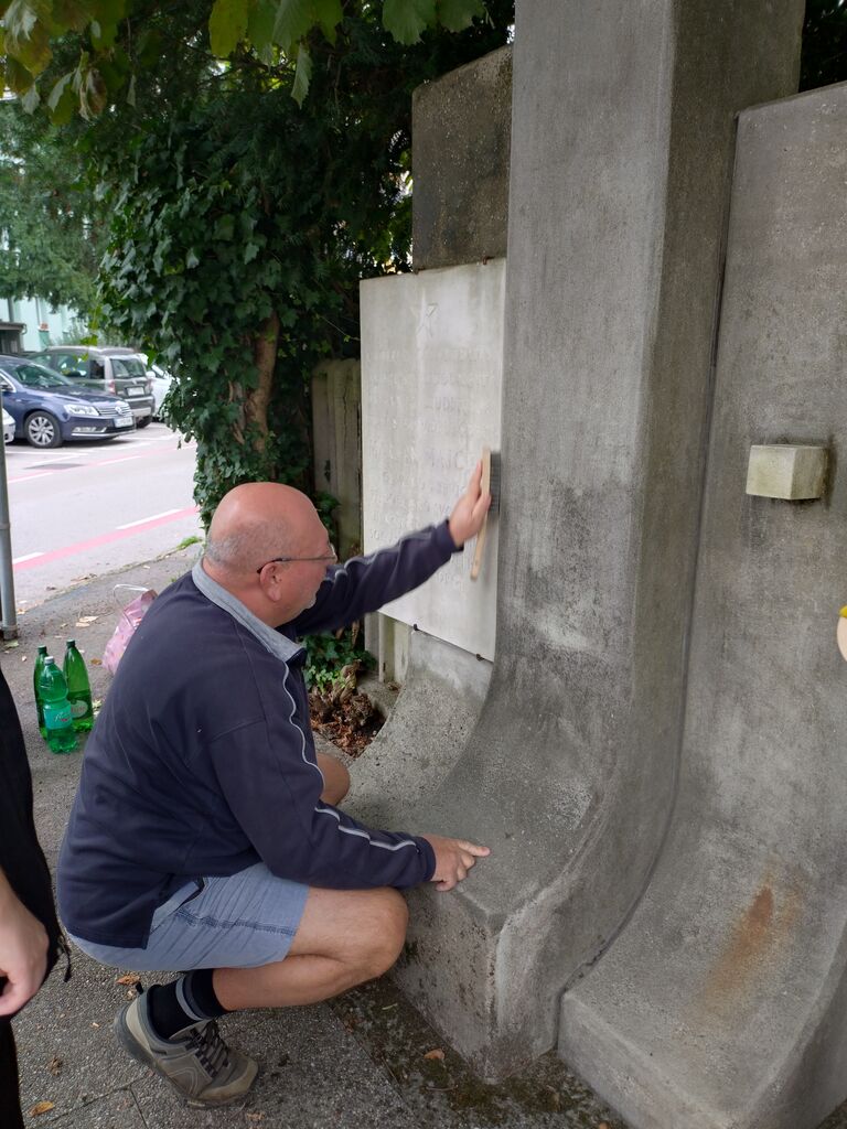 Spomenik na križišču Tugomerjeve in Sternenove ulice v Ljubljani je bil preraščen z mahom in algami, barva je zbledela do te mere da napis z rdečo zvezdo ni bil več viden. Zaradi pomanjkanja članov v KO Zgornja Šiška, kjer spomenik stoji, so se v sodelovanju s predsednico Zalko Vidergar akcije tovariško lotili prostovoljci iz sosednjih krajevnih organizacij.