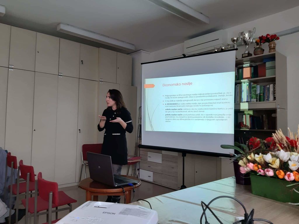 V strokovnem predavanju sem se predavateljica, mag. Klementina Sambolič dotaknila najprej pojma nasilje, ter vse oblike nasilja, ki jih poznamo: psihično, fizično, zanemarjanje, spolno in ekonomsko. Spoznali smo kako se vsaka izmed navedenih oblik izraža, spoznali pa smo tudi kakšna je razlika med prepirom med dvema in nasiljem nad osebo.