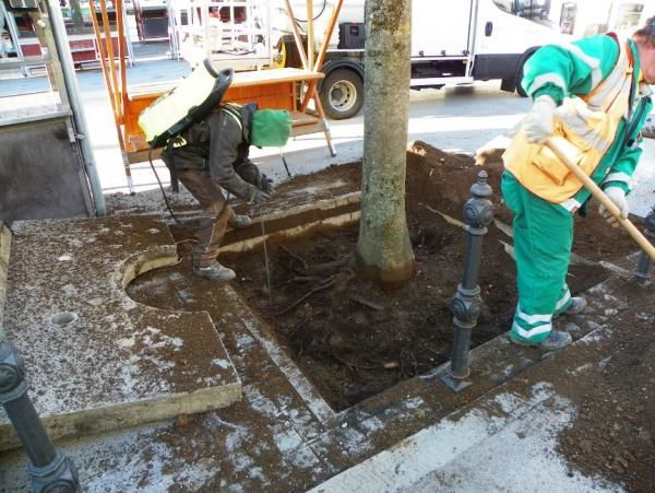 Ostala drevesa so oskrbeli sodelavci iz javnih podjetij Voka Snaga in LPT. Med drugim so dvignili betonske pokrove in izpihali zgornji sloj kontaminirane zemlje ne da bi poškodovali drevesne korenine. Krožne korenine (ki na dolgi rok pričnejo dušiti drevo) so odstranili in nivo zemlje vrnili na prvotno višino. Zalili so jih z biostimulantom iz fulvične kisline, ki je naravni pospeševalec rasti in korenine potresli s prahom Biovin, ki vsebuje ekološka rastlinska hranila in veliko število koristnih mikroorganizmov, vključno s pomembnimi bakterijami, ki nase vežejo dušik (aktinomiceti) in SAR mikrobi, ki izboljšajo odpornost in toleranco na abiotski stres. Dodali so jim klasično založno gnojilo (NPK), ki se bo počasi sproščalo v obdobju celotne sezone, in preparat za nižanje površinske napetosti vode, kar bo omogočalo optimalen izkoristek vlage v tleh. Odkopan in ponovno razgaljen del koreničnika so zaščitili pred sončnimi opeklinami, drevesne korenine pa ponovno zasuli z lahko, svežo rodovitno zemljo.