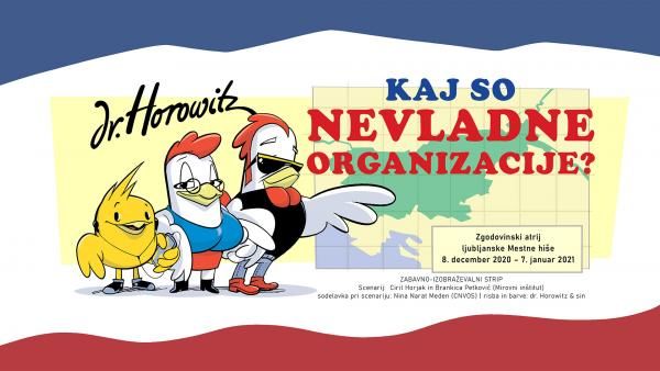 V Zgodovinskem atriju je na ogled razstava stripa dr. Horowitza Kaj so nevladne organizacije?, ki je nastala v produkciji Mirovnega inštituta v sodelovanju s Centrom nevladnih organizacij – CNVOS.