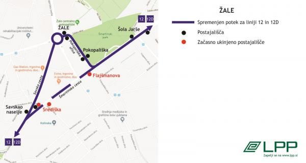 Liniji 12 in 12D bosta oba dneva delno spremenjeni in bosta obratovali mimo Žal v obeh smereh.