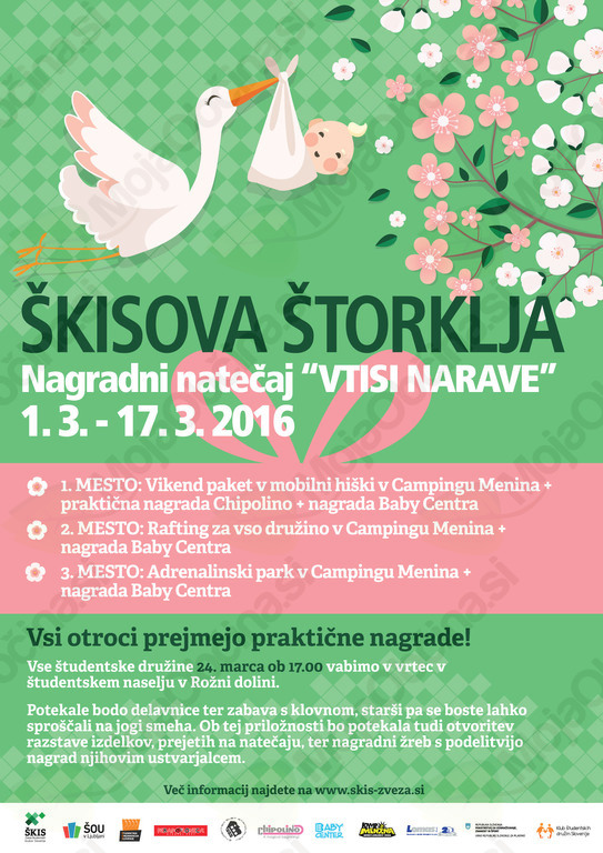 Z današnjim dnem se že enajsto leto zapored začenja projekt Škisova štorklja, ki ga Zveza ŠKIS namenja študentskim družinam. Prvi del projekta predstavlja natečaj otroških risbic in drugih likovnih izdelkov, ki bo trajal do 17. marca. Pri natečaju lahko sodelujejo študentske družine, kjer je vsaj eden od staršev študent. Nagrajeni bodo vsi prejeti izdelki.