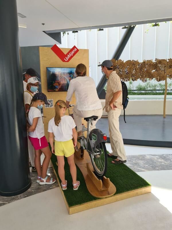 Ljubljana svoje ključne cilje že vrsto let gradi na temeljnih smernicah trajnostnega razvoja, kar je predstavljamo tudi na EXPU Dubai. Skozi zgodbo o kolesarjenju skušamo ponazoriti trajnostne oblike mobilnosti. Obiskovalcem je na ogled replika najstarejšega lesenega kolesa na svetu in virtualna izkušnja kolesarjenja, ki je obiskovalcem še posebej zanimiva, saj si skozi posebno doživetje ogledajo zeleno Ljubljano. S kolesarjenjem z BicikeLJem po virtualnih ljubljanskih ulicah tako lahko vsak obiskovalec začuti turistično izkušnjo v Ljubljani. Nastop smo nadgradili s postavitvijo različnih generacij koles, s čimer želimo prikazati ohranjanje kulturne dediščine ter prepoznavanje in spodbujanje visokega inovacijskega in tehnološkega potenciala.