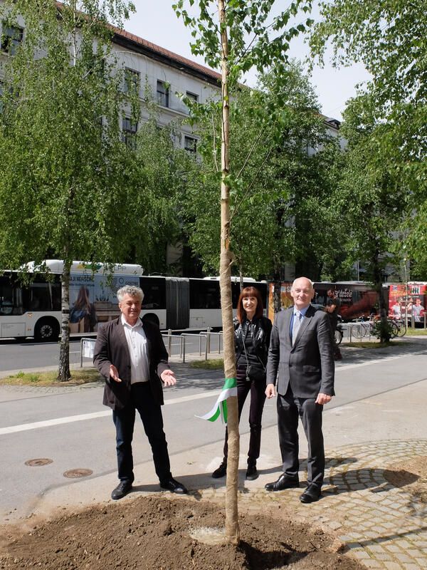 Podžupan prof. Janez Koželj in veleposlanik Irske Myles Geiran sta pred Filozofsko falukteto posadila brezo.