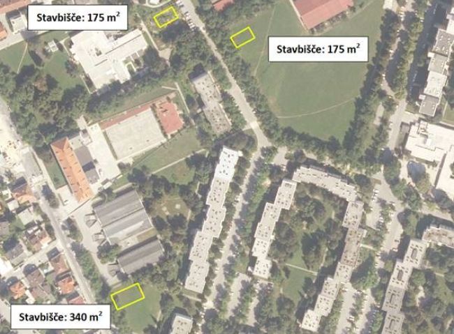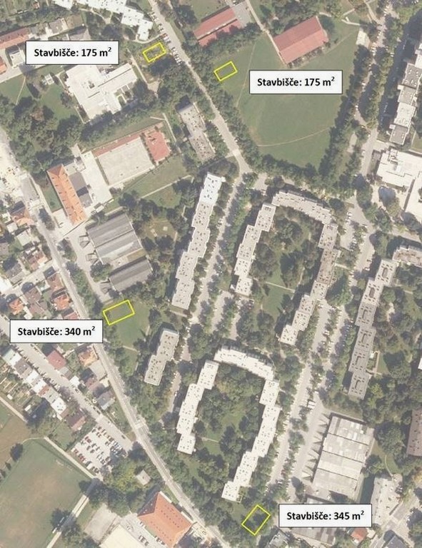 - Vodnikova sever: 340 m2 stavbišča, cca. 10 stanovanj