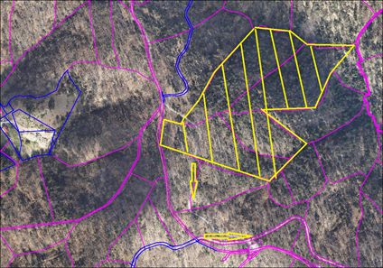 Dela ne bodo potekala v bližini poti, le spravilo hlodovine bo potekalo po krajšem odseku grebenske poti do Italijanke, kar je na skici označeno z rumenimi puščicami.