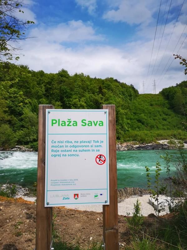 Reka Sava je pozimi spodjedla poti in brežine, premaknila betonske ploščadi in nanesla ogromno ostrega kamenja, zato smo na novo utrdili brežine, nanesli prod, ojačali breg ter obnovili vse betonske ploščadi za sončenje. Poleg tega smo zdaj uredili še dostop do reke.