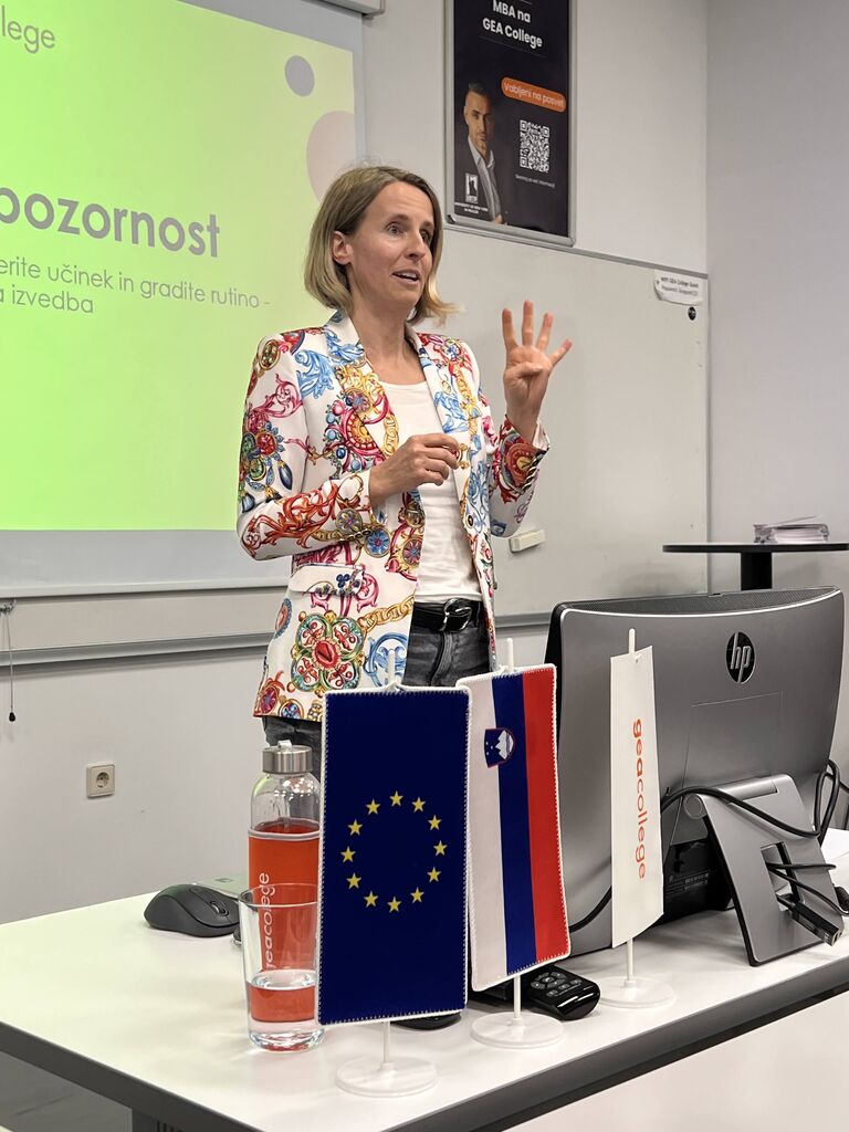 V imenu GEA College je zbrane uvodoma pozdravila Tanja Rihtaršič. V nagovoru je odprla razmislek o vlogi znanja v sodobnem podjetniškem okolju, znanja, ki presega golo informacijo. Znanje kot temelj razumevanja, je sposobnost povezovanja dejstev in podlaga za kakovostne, premišljene odločitve. Poudarila je, da so prav kompetence, pridobljene skozi izobraževanje in izkušnje, tiste, ki podjetjem omogočajo dolgoročno stabilnost, inovativnost in razvoj.