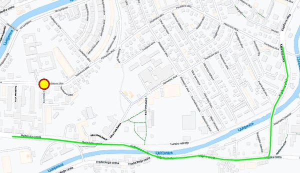 Obvoz bo po Kajuhovi, Litijski in Poljanski cesti.