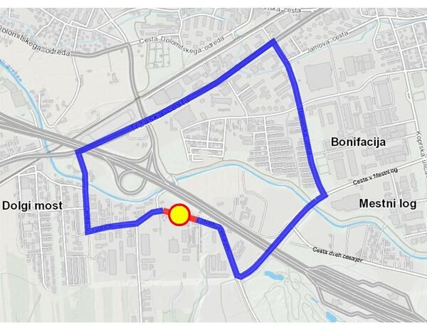 Obvoz bo po Tbilisijski ulici, Tržaški cesti in Cesti v Gorice, mestni avtobusi na liniji 1 bodo vozili po spremenjeni trasi.