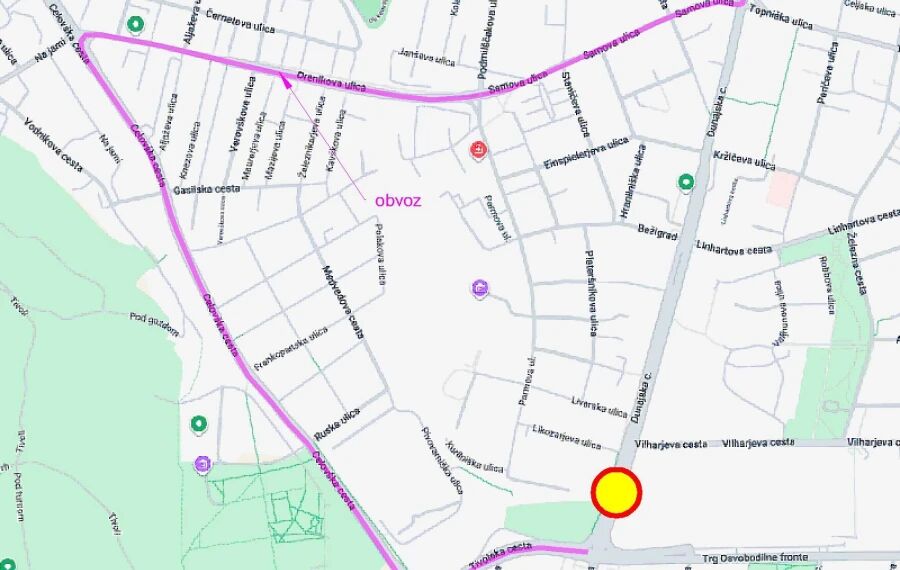 Obvoz bo potekal po Celovški cesti ter Drenikovi in Samovi ulici.
