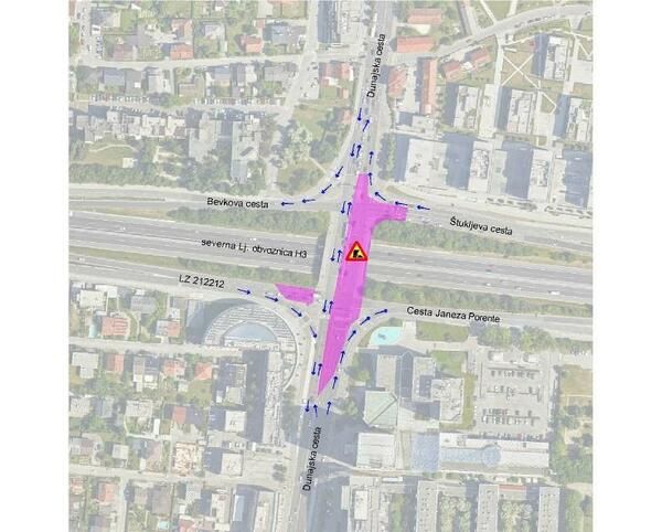 Obnovitvena dela na nadvozu Dunajske ceste nad ljubljansko obvoznico se nadaljujejo. Od 20. maja, do predvidoma 1. junija 2023 bo promet na nadvozu potekal po enem voznem pasu v vsako smer, iz priključnih cest pa bo možno le zavijanje desno.