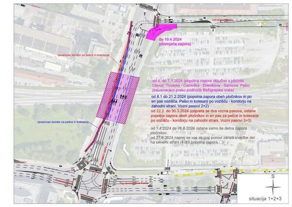 - 4. - 7. januar 2024: popolna zapora za ves promet, vključno s pešci in kolesarji.