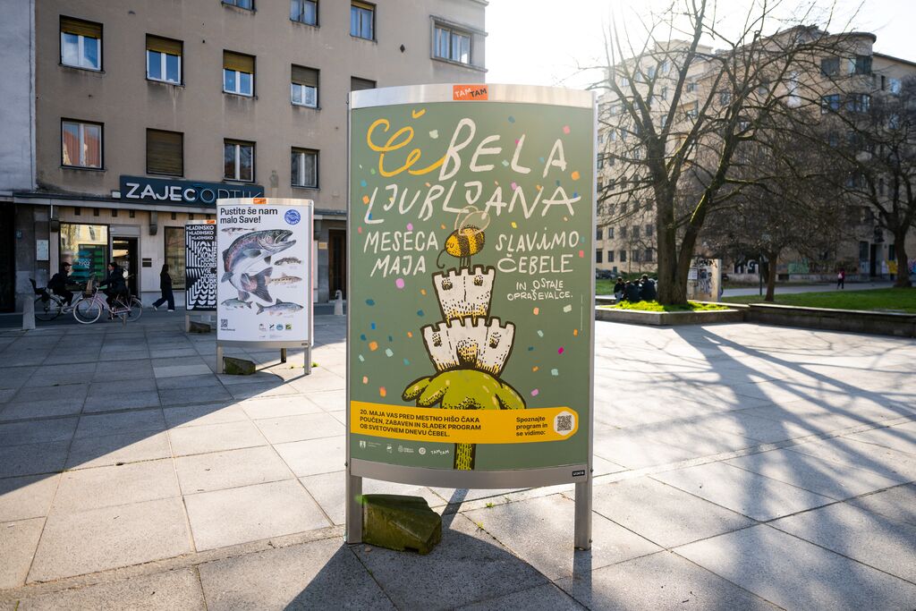 Na razstavi Mestna 5ka 2024 si lahko ogledate tudi plakat Čebela Ljubljana, ki se je uvrstil v finalni izbor.
